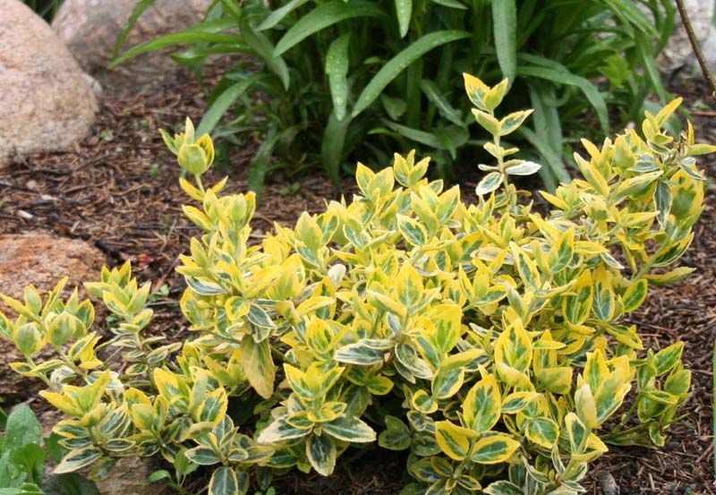 Бересклет Форчуна Интерболви - это удивительное растение с темно-зелеными листьями, украшенными желто-белым пятном в середине. Его стебель прочный и устойчивый, а высота достигает до 30 см. Листья имеют форму овала и создают неповторимый вид вашему саду или огороду.