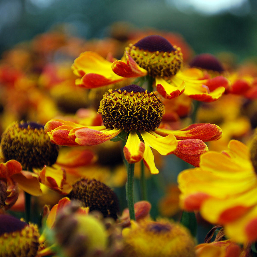 Семена гелениума осеннего Осенняя серенада — потрясающая смесь, которая наполнит ваш сад яркими красно-желтыми красками. Цветы на стебельках высотой до 120 сантиметров можно срезать для составления роскошных букетов. Этот сорт прекрасно сочетается с другими декоративными растениями. Цветы долго сохраняют эффектный вид и могут цвести до наступления осенних заморозков. Чтобы растения формировались крепкими и здоровыми, семена гелениума осеннего Осенняя серенада рекомендовано высевать на зиму. Летом кусты нуждаются в регулярном поливе, особенно в период засухи. Растение следует пересаживать раз в 3–4 года, а каждой весной подкармливать минеральными удобрениями.