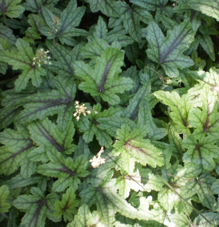 Рассада гейхереллы Кимоно (Kimono) поражает необычным эффектным видом – резная листва имеет зеленую окраску, сквозь которую проступают бордовые прожилки. Этот красивый многолетник используют для украшения бордюров, наполнения смешанных клумб, а также декорирования альпийских горок.