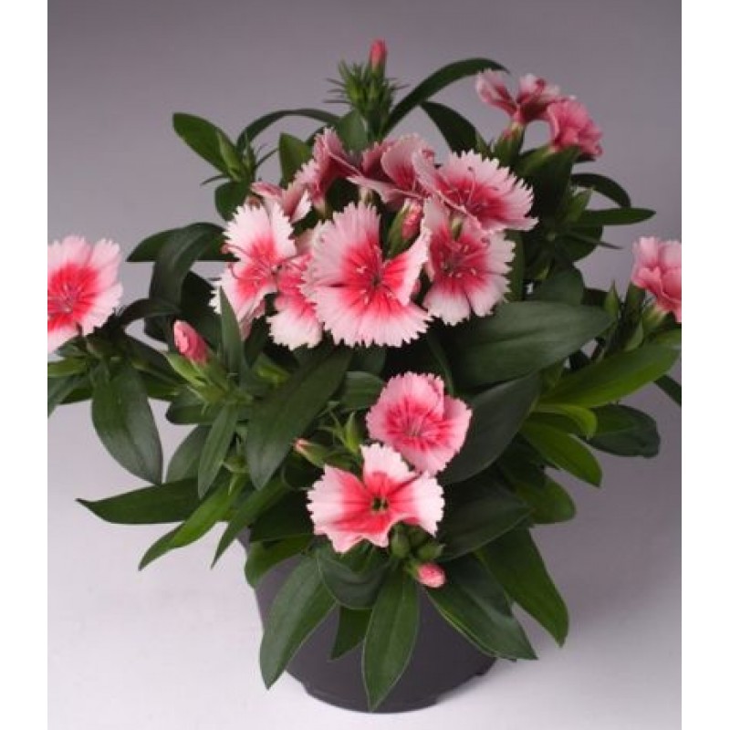 Гвоздика Chiba Strawberry - это удивительное растение с нежными цветками розово-красного оттенка, которые радуют глаз в течение нескольких месяцев в году. Ее стебель прочный и изящный, достигает высоты до 25 см, что делает эту гвоздику идеальным выбором для групповых посадок в саду или на клумбе. Листья растения имеют интересную форму и придают ему особый шарм.