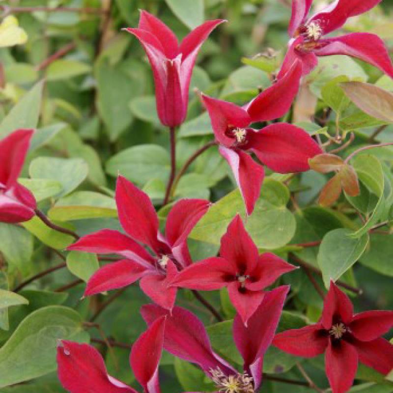 Саженцы клематиса гибридного Гравити Бьюти (Gravetye Beauty) предпочитают солнечные или слегка затененные места с легкими и водопроницаемыми почвами богатыми питательными веществами. Оригинальные багровые тюльпановидные цветки распускаются на лиане с июля по август. По окончании цветения побеги украшают декоративные соплодия. Высота растения достигает 200-300 см. Для поддержания растения в вертикальном положении нужна опора. Клематис гибридный Гравити Бьюти (Gravetye Beauty) применяют для декорирования садовых построек, при создании клуб и композиций.