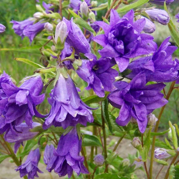 Саженцы колокольчика крапиволистного Бернис (Bernice) порадуют компактными габаритами, эффектным цветением и неприхотливостью. Взрослое растение представляет собой куст высотой около 50–60 сантиметров, состоящий из резных зеленых листьев и прямых цветоносов. В июне распускаются красивые синие махровые цветы диаметром 3-4 сантиметров. Этот сорт используют для украшения цветников, миксбордеров, заполнения пустых участков сада и создания ярких смешанных композиций. Для посадки рекомендовано выбирать хорошо освещенные места, но растение переносит легкую полутень.