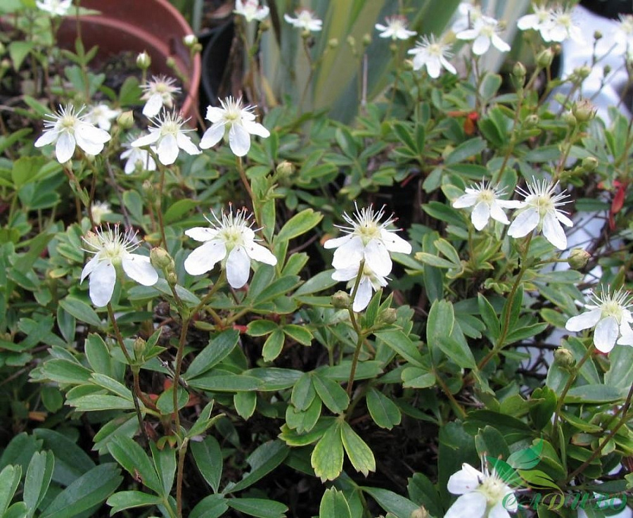 Саженцы Лапчатки трёхзубчатой Нуук (Nuuk) – это олицетворение чувственной нежности белоснежных облаков. Вечнозелёный кустарник станет центром внимания на вашем садовом участке. Густые кроны разрастаются в ширину на 50 см, а в высоту около всего лишь на 20 см. Крупномер устойчив к зною летом и холоду зимой. Начинает цвести сорт Нуук в июне, а заканчивает к сентябрю. Белые цветки вырастают до 1 см в диаметре. Осенью кустарник облачается в насыщенные бронзовые и бордовые тона.