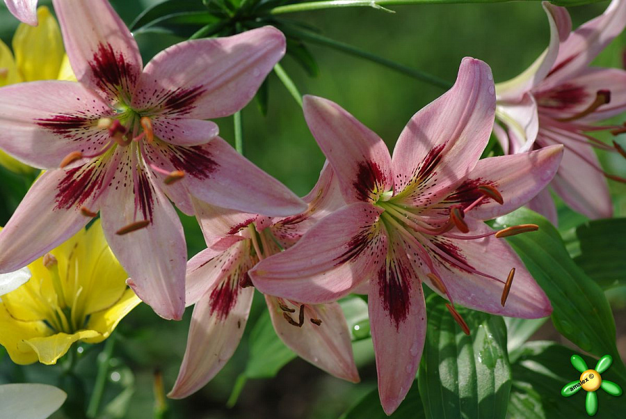 • Окраска цветка : розовая с бордовым пятном в центре лепестка