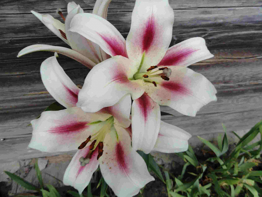 Окраска цветка : кремовые, с малиновыми стреловидными мазками от сердцевины до середины лепестка